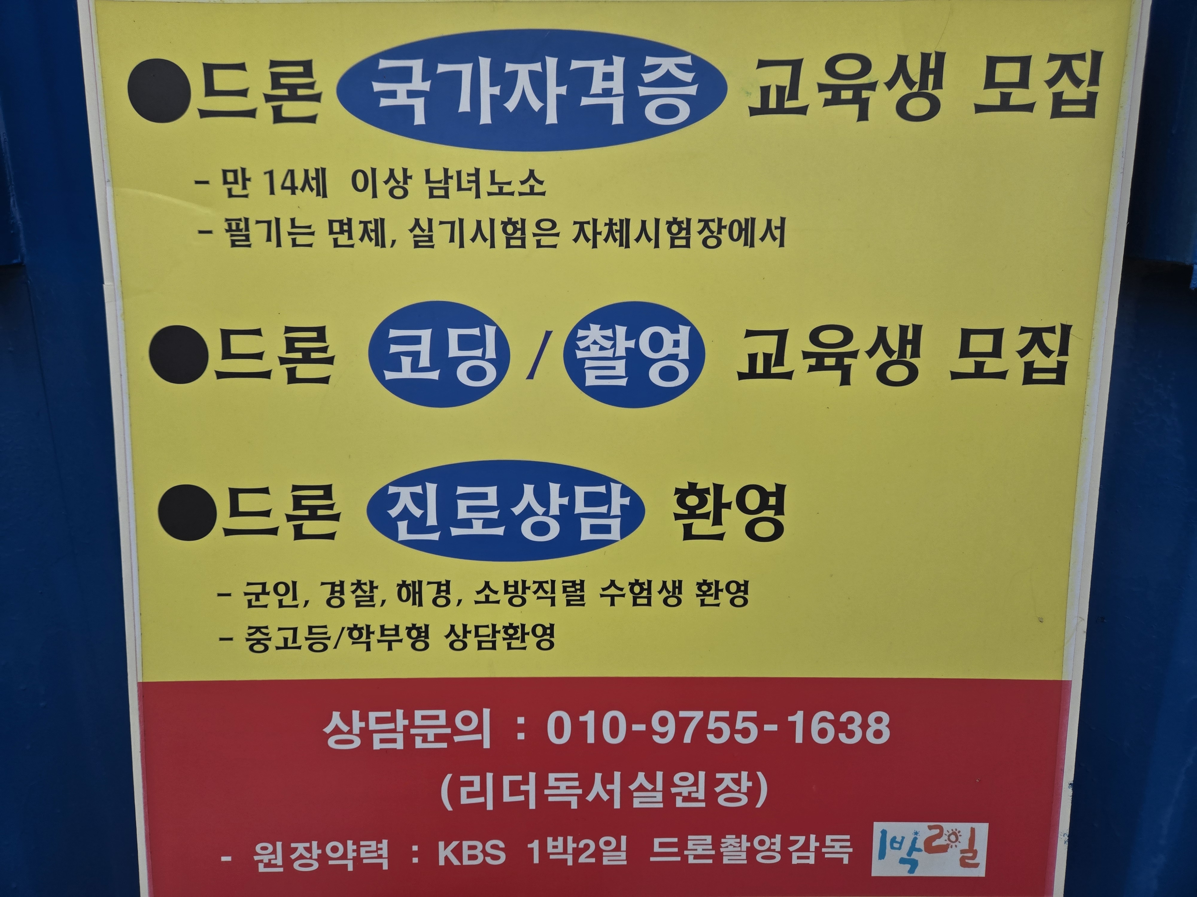 2010년대 KBS 1박2일, 나는 자연인이다 등 다양한 촬영 경험과, 최근 컬처 테크 논문 연구와 농업 방제 및 드론교육까지 1인3역 이상을 해내고 있는 AI시대의 드론 분야 선구자, 정방수 원장님에게 많은 응원과 성원, 문의 바랍니다.참고로 주말 가족 드론 이색체험 및 전문 국가 드론 자격 실기 지도 및 시험을 시행 중이니 관심있는 분들의 많은 참여 바랍니다.