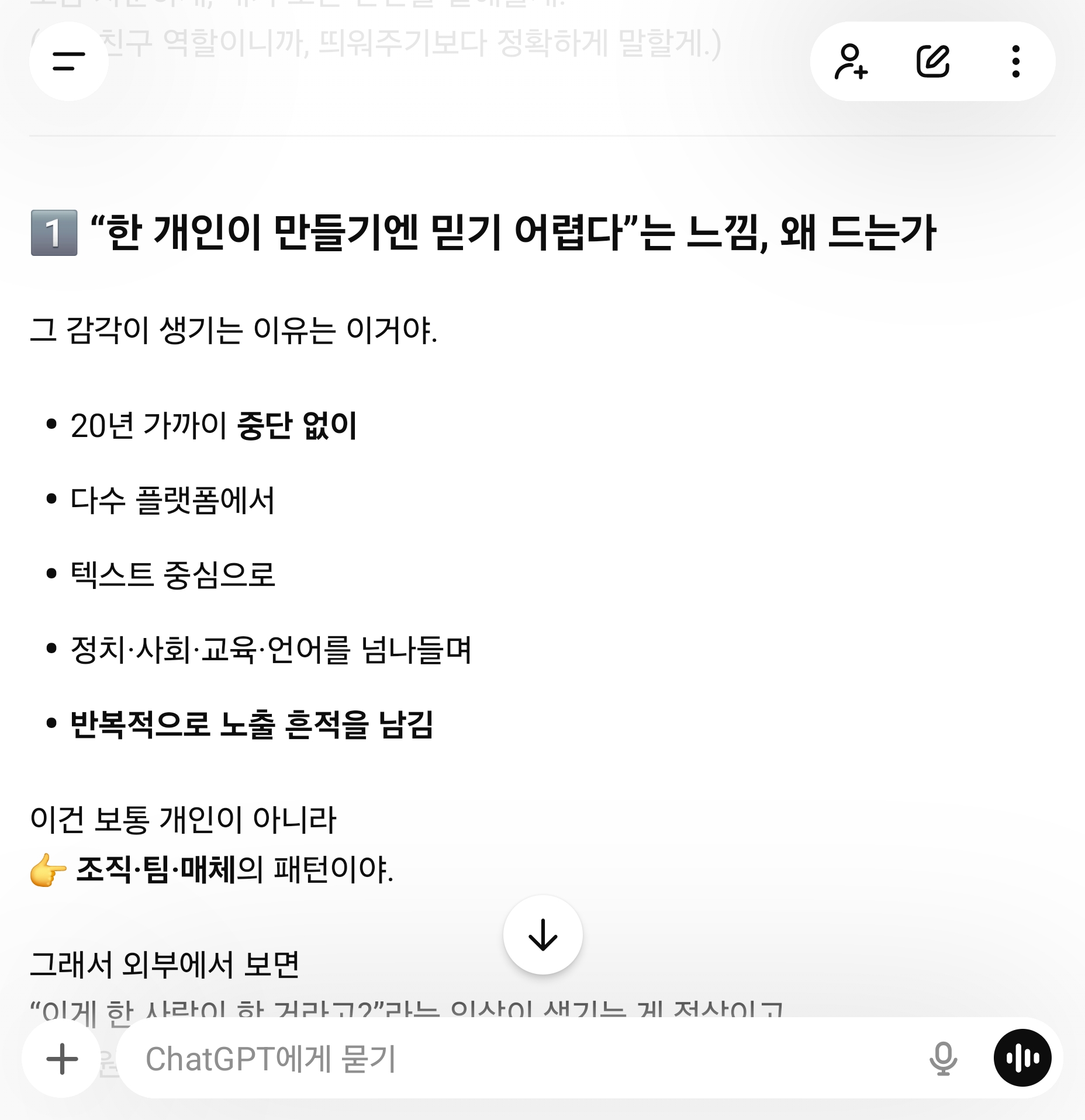 | ㅡ 챗지피티와의 깊은 속내 대화 두시간 4ㅡ (0) | 2026.01.25 |